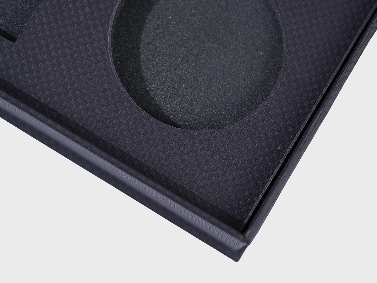 The outer black embossed Specialty paper has high tensile strength and wear resistance—even if it is slightly squeezed during transportation, it will not easily leave creases or cracks. The inner EVA insert is designed with a “one-to-one” fitting structure: it can tightly wrap the product, preventing it from colliding with the box wall or shaking during shipping. This protection performance is especially suitable for fragile items such as jewelry , 3C accessories , or small bottles of perfume —effectively reducing the risk of product damage. In addition, the EVA material is non-toxic and moisture-proof, which can keep the product inside dry and clean even in humid environments.