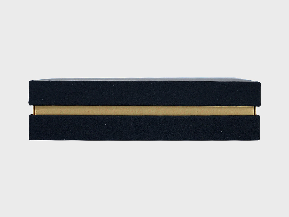 | सामग्री | Black Textured Soft-Touch Paper、ग्रे बोर्ड、Matte Gold Cardstock、Scratch-Resistant Matt Lamination、Paper Pulp Insert |