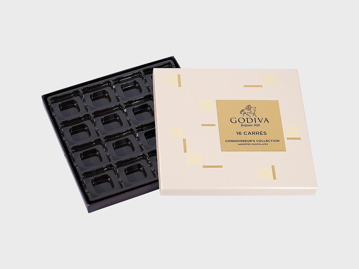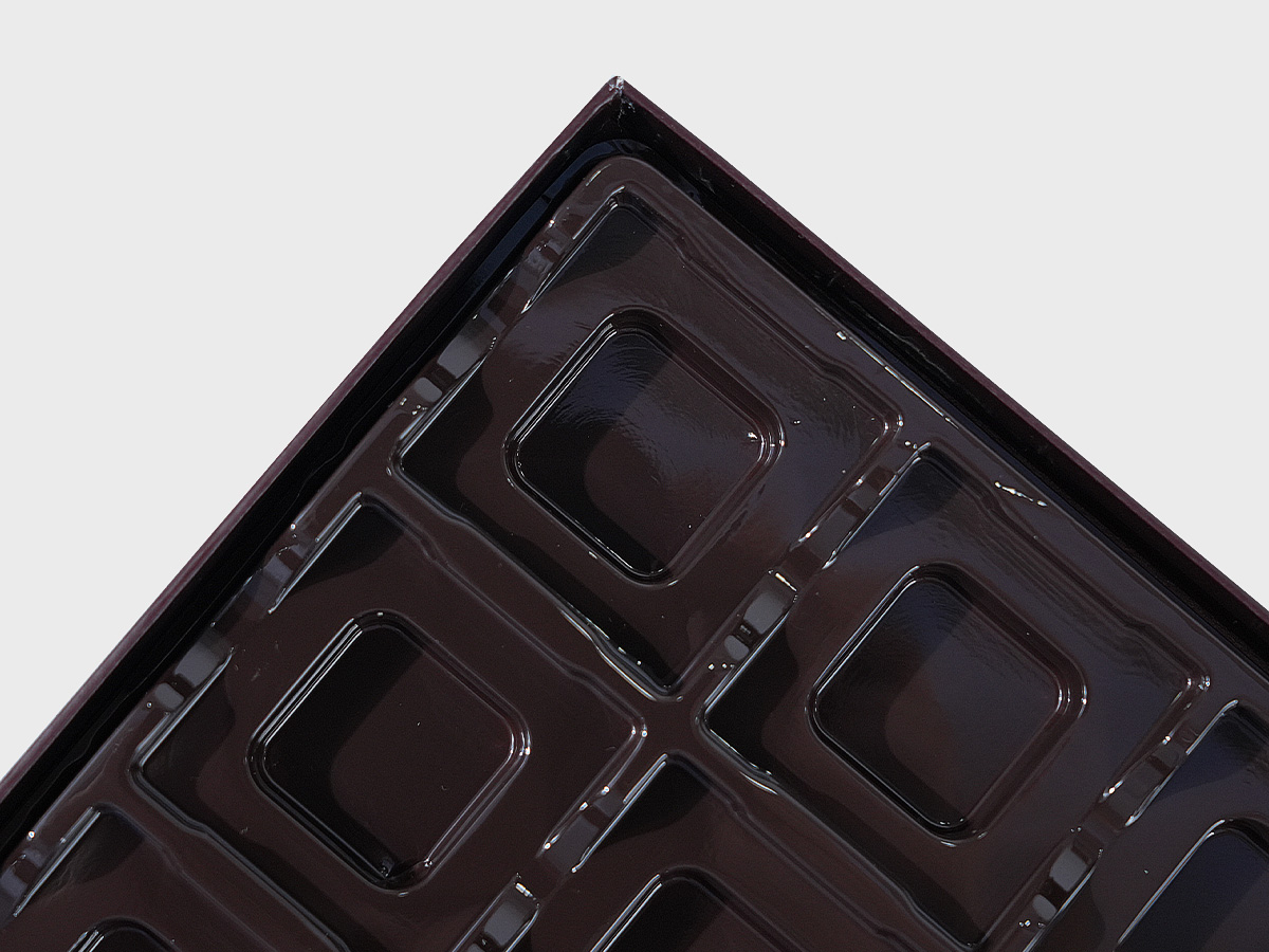 Adopt Grey board mounting process to enhance the box’s hardness. The plastic insert fits the shape of chocolates accurately, providing stable protection for chocolate boxes packaging and balancing beautiful display with practical functions.