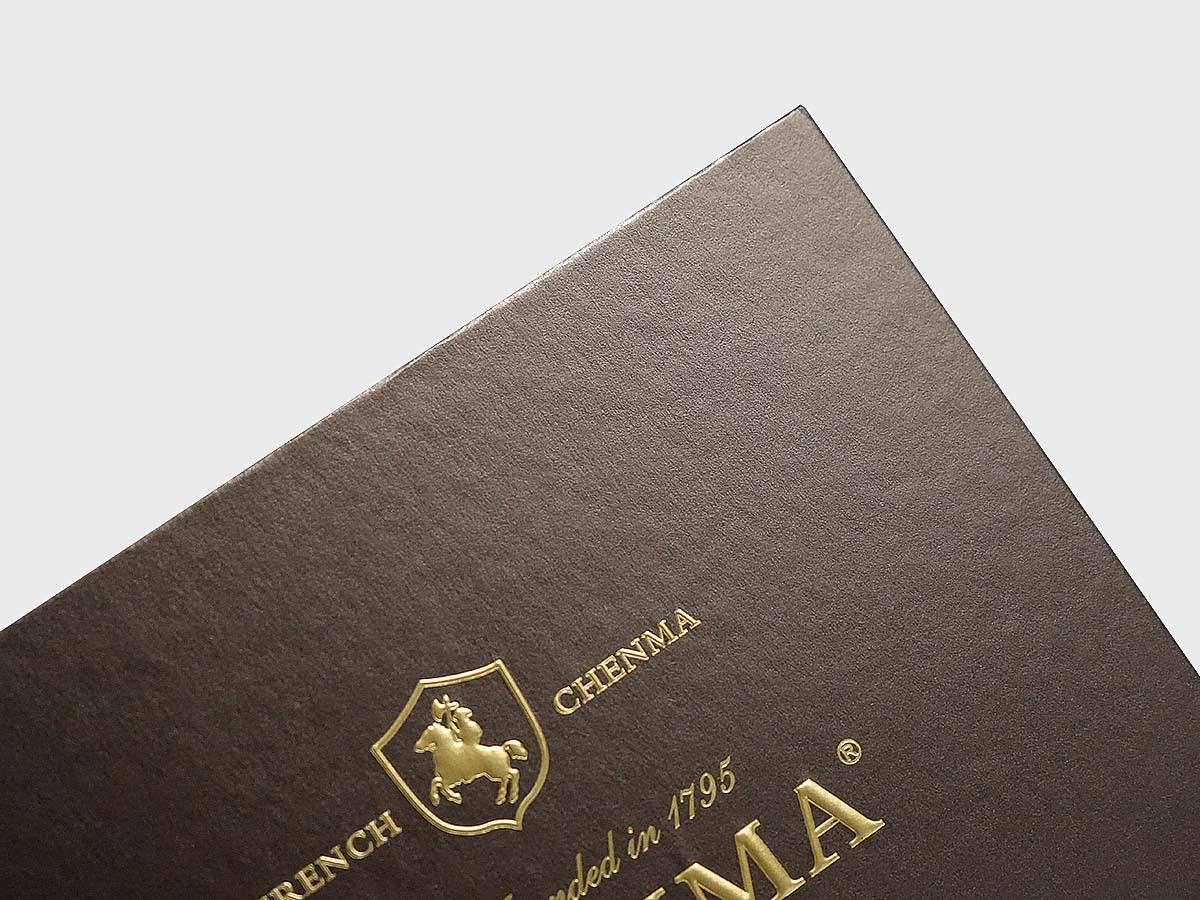 | Cor | Gravação、Matte Gold Foil Stamping |