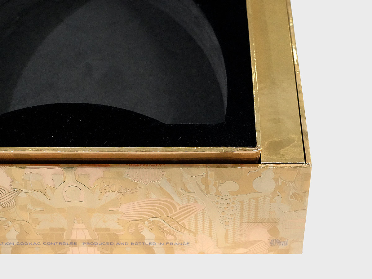 The gold stamping process adds a luxurious metallic sheen to the hinged whisky wine box. It perfectly complements the Silver Cardstock, highlighting the premium quality of the custom wine box and making it a standout wine bottle gift box.